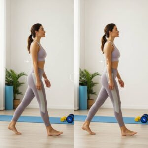 自宅でできる歩き方トレーニングとして「本頭バランスウォーク」が効果的です。頭の上に薄い本を乗せて家の中を歩くだけの簡単なエクササイズですが、姿勢を正し、重心のブレを抑える効果が絶大です。はじめは本が落ちてしまうかもしれませんが、続けるうちに安定した歩き方が身につきます。
